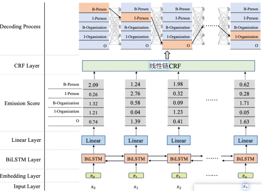| CRF | 建模标签之间的依赖,输出最优序列 |